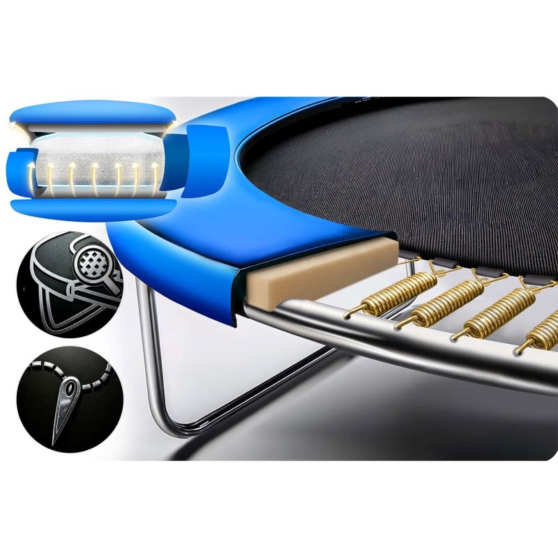 Посилена рама та пружини забезпечують відмінну амортизацію і стабільність під час тренувань чи розваг. У комплекті передбачена зручна драбинка, яка полегшує доступ на батут, особливо для дітей.