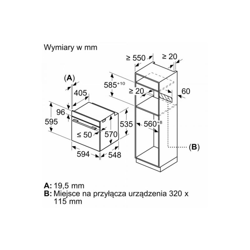 • Ніша: приблизно 585–595×560–568×550 мм