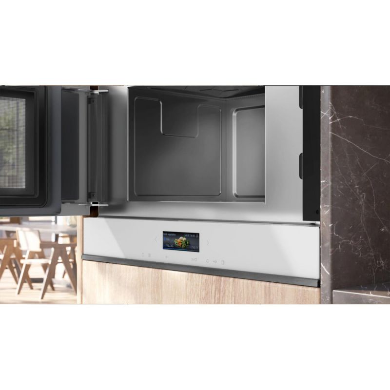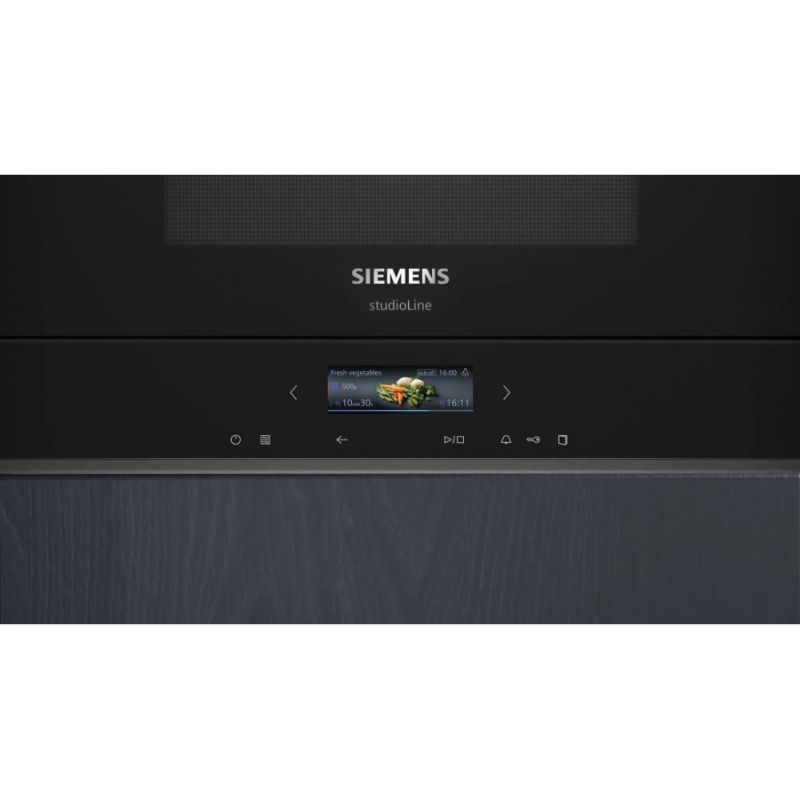 Вбудована мікрохвильова піч Siemens iQ700 BF722L1B1 — це флагманська модель нового покоління, яка перетворює звичайний розігрів на інтелектуальний процес. Вона виконана в ультрасучасному дизайні Black Steel і позбавлена традиційної поворотної тарілки, що дозволяє використовувати внутрішній простір на повну.