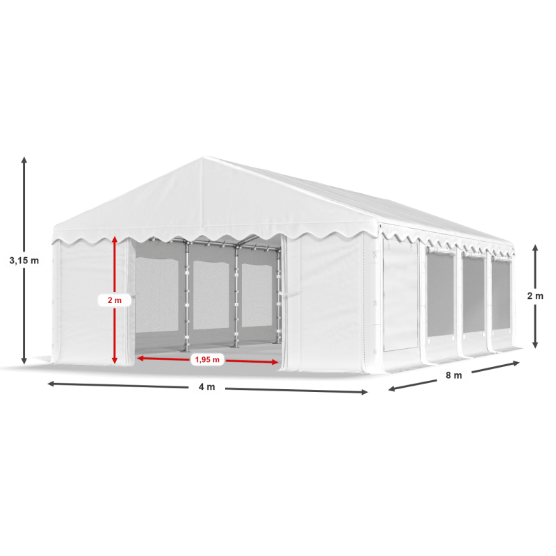 Завдяки великому розміру 4×8 метрів, намет легко вміщує столи, стільці або зону відпочинку для великої компанії. Білий колір додає елегантності та гармонійно вписується в будь-який ландшафт чи формат події.