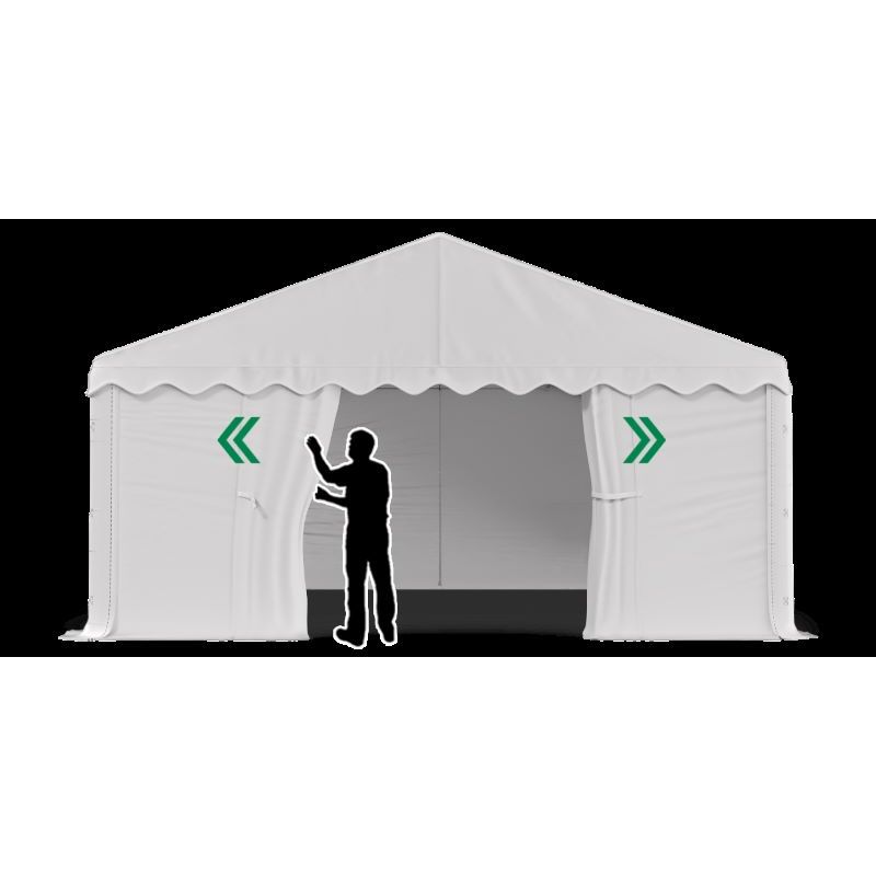 Цей павільйон ідеально підходить для проведення святкових заходів, ярмарків, весіль, виставок, а також може використовуватися як складське або господарське приміщення.