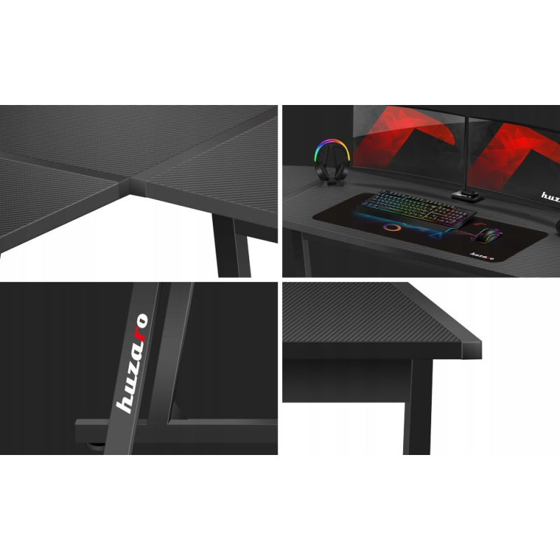 Huzaro Hero 6.0 Black — це стильний, ергономічний та практичний геймерський стіл, створений для комфортної гри, роботи, навчання та щоденного використання. Завдяки кутовій L-подібній конструкції він дозволяє максимально ефективно використовувати простір у кімнаті та створити зручне робоче або ігрове місце. Модель можна зібрати як на ліву, так і на праву сторону, що робить її універсальним рішенням для будь-якого інтер’єру. Основні характеристики, включно з L-подібною конструкцією, двома варіантами складання, Carbon Flex покриттям, 15 мм товщиною стільниці, посиленим каркасом та регульованими ніжками, підтверджуються сторінками виробника та ритейлерів.